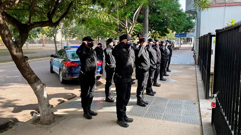 Dicho homenaje se realizó durante un minuto, momento en el cual se encendieron balizas y sirenas de los móviles policiales, junto a una formación de personal uniformado realizando saludo uno.