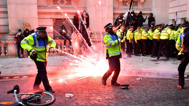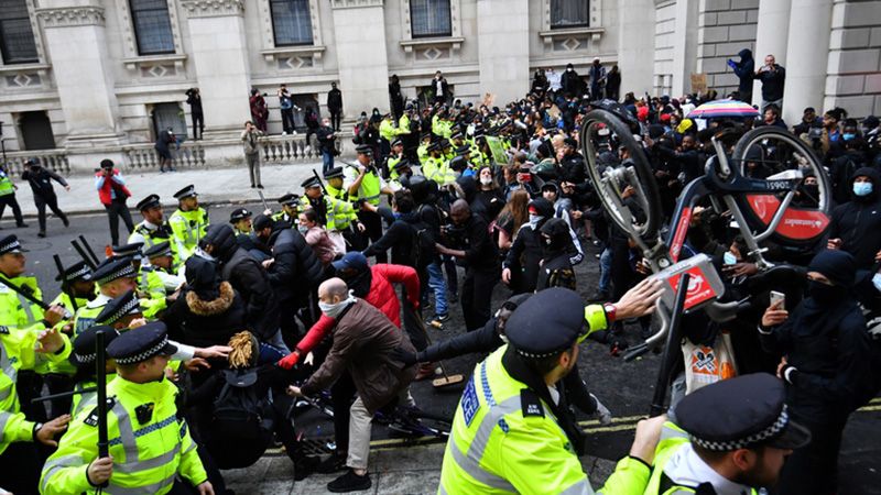 Este domingo se vivió una nueva jornada de tensión en Londres, tras los disturbios registrados entre la policía y los manifestantes en el marco de las protestas contra el racismo.