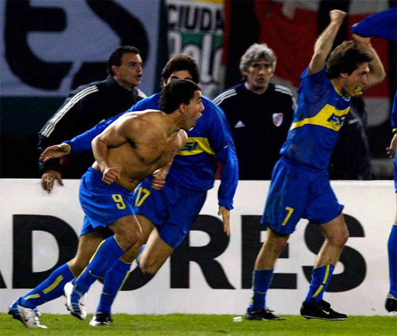 En la revancha, Luis González abrió el marcador para River y Carlos Tevez enmudeció al Monumental con un tanto cerca del final. En el festejo hizo la recordada "gallinita", Héctor Baldassi le mostró la roja y ya en el descuento llegó la agónica conquista de Cristian Nasuti que derivó en los penales.