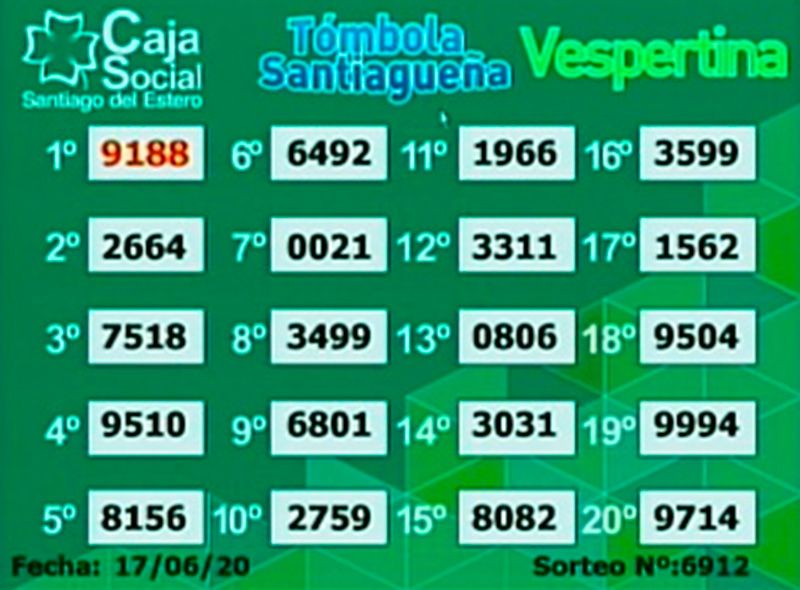 Posteriormente, en la edición vespertina de la Tómbola Santiagueña, el primer premio fue para el 9188. En el Libro de los Sueños el 88 es “El papa”.