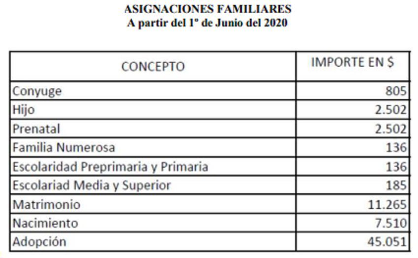 Por ejemplo, la asignación por Matrimonio sube a $11.265, por Cónyuge a $805 y Prenatal a $2.502 y Nacimiento a $7.510.