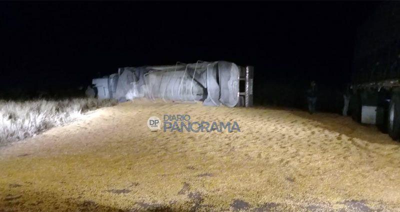 Un camión Volskwagen 17310 que transportaba maíz, conducido por Lautaro Echevarría con residencia en Entre Ríos, volcó de manera brusca y perdió gran parte de la carga.