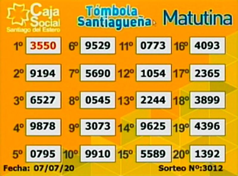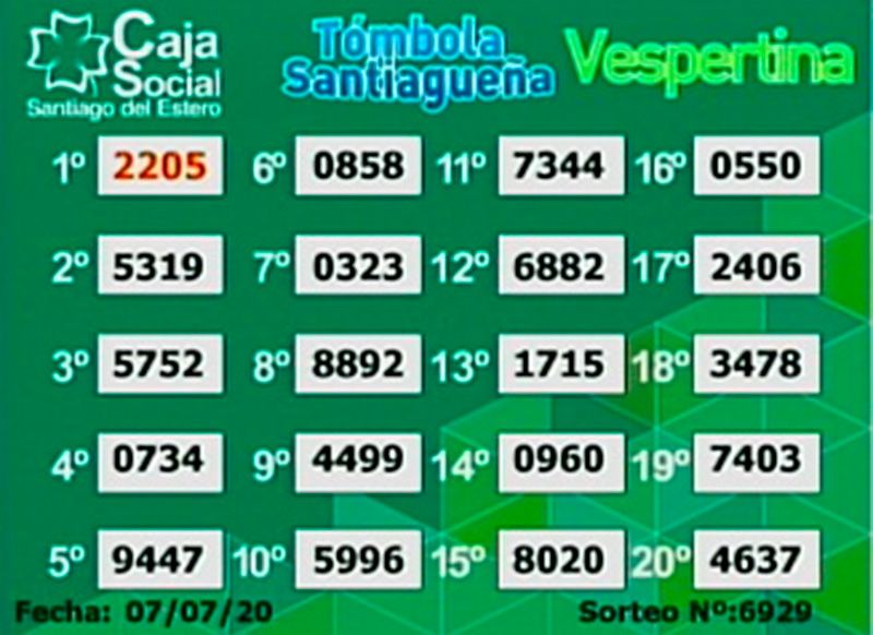 Este martes 7 de julio de 2020, como todos los días, se llevó a cabo un nuevo sorteo de la Tómbola Santiagueña.
