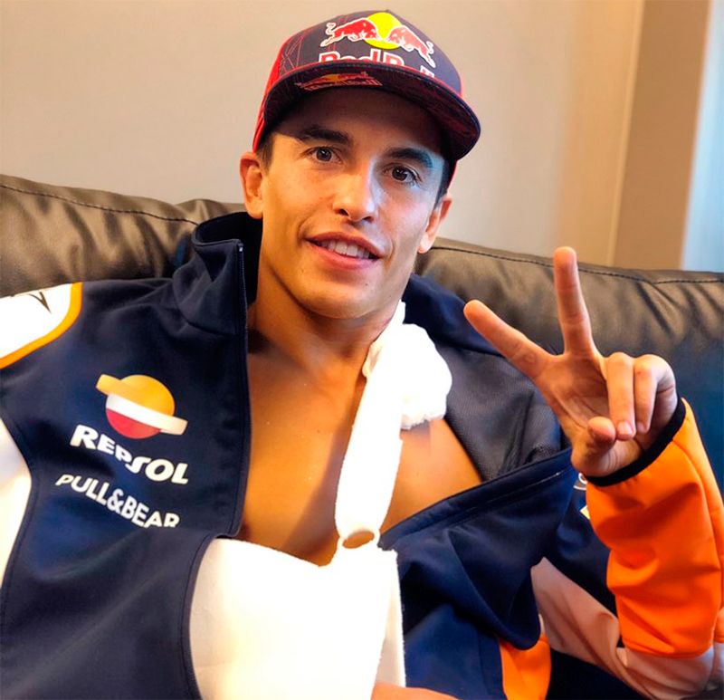 Márquez fue intervenido en una clínica de Barcelona de la fractura del tercio medio del húmero del brazo derecho que sufrió luego de su espectacular caída en la carrera del Mundial que se llevó a cabo en Jerez de la Frontera.