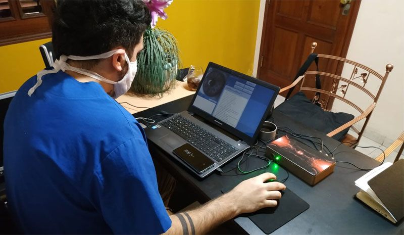 Una computadora, un equipo pequeño, unos auriculares y un poco de cablerío. ¿No hace falta nada más? “No, todo está aquí”, responde entre risas.
