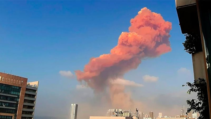Una serie de explosiones sacudieron este martes la capital libanesa, sobre la que se eleva una gran columna de humo de color rojizo, que se originó, presuntamente, en un almacén de explosivos del puerto de Beirut, informó la Agencia Nacional de Noticias (ANN).