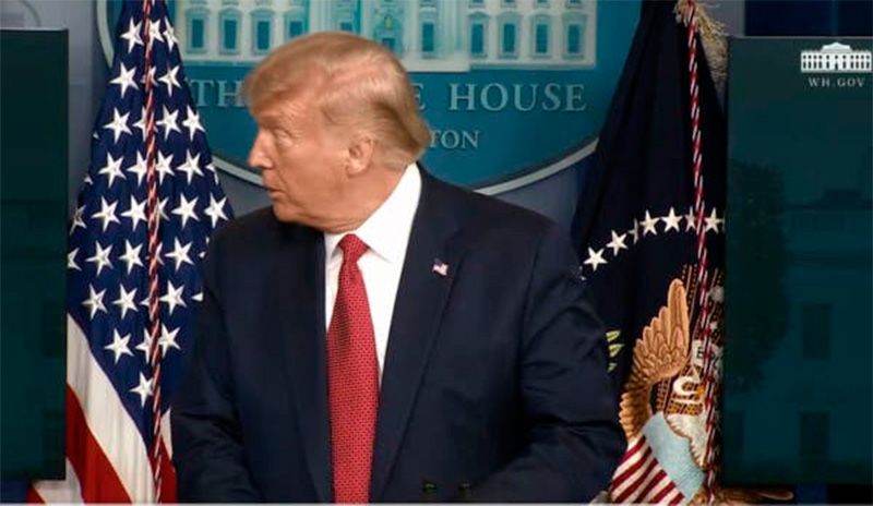 Trump, sin explicación mediante, obedeció la orden de "salga" del agente y se retiró abruptamente de la sala de reuniones.