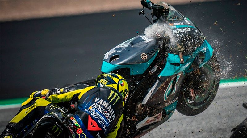 'Il Dottore' confesó que fue "un momento muy peligroso" y criticó con dureza a Zarco, del que cree que lo que hizo con Morbidelli fue "a propósito". "Sólo hay que revisar las imágenes con atención. Zarco cambia de trayectoria al frenar porque no quiere que le pase Morbidelli, lo hace conscientemente, va a cortarle la carretera a otro piloto a 300 km/h", indicó.