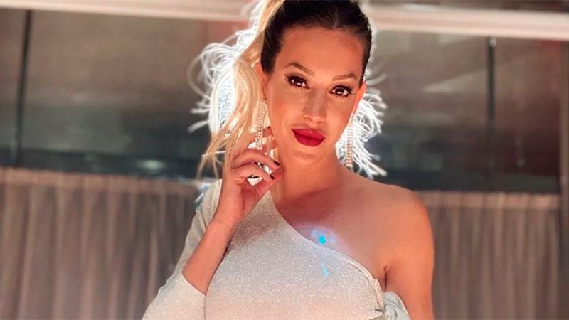 La bailarina posó muy atractiva sobre la mesa de su living y lució un delicado conjunto de ropa interior blanco. Sus medias bucaneras completaban una imagen que transmitía tranquilidad y pureza.