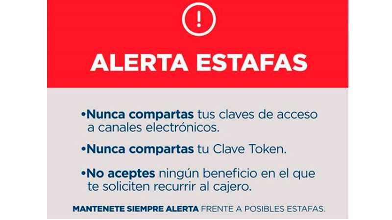 Resalta asimismo que no hay personal autorizado a solicitar a los clientes o usuarios ningún tipo de clave o información personal, por lo que de recibir algún tipo de llamada o comunicación sospechosa, cortar y solicitar ayuda a familiares o personas de confianza.