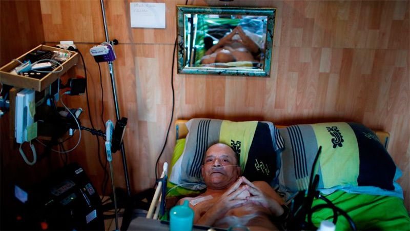 “Mis intestinos se vacían en una bolsa. Mi vejiga se vacía en una bolsa. No puedo alimentarme, así que me ceban como a un ganso, con un tubo en el estómago. Ya no tengo una vida digna”, relató.