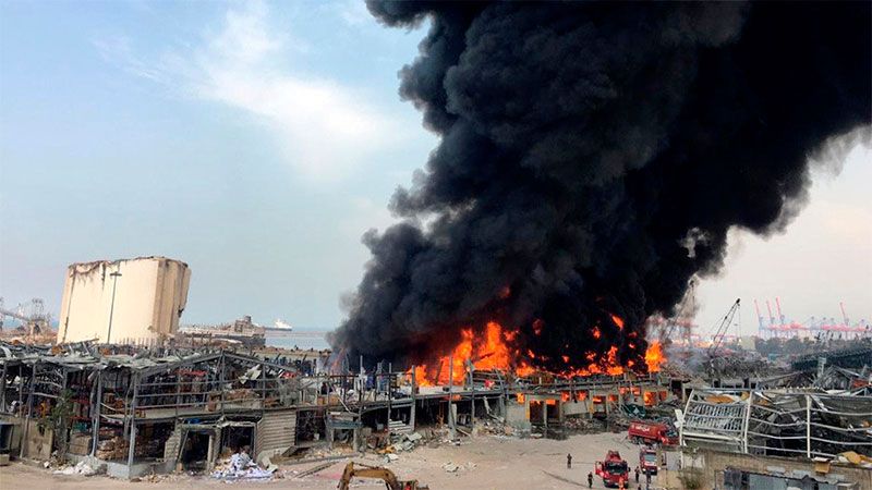 El fuego estalló en la zona franca del puerto, enviando una enorme columna de humo sobre la ciudad. La fuente militar dijo que la causa del incendio no estaba clara de inmediato, aunque las autoridades descartaron que pueda provocar una nueva explosión.