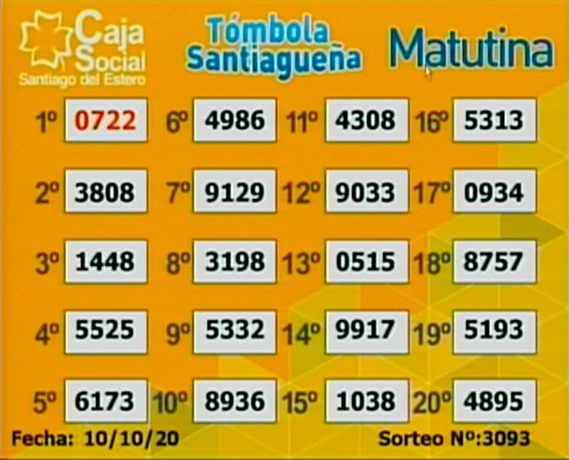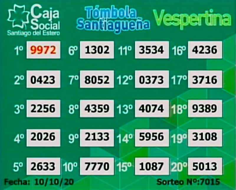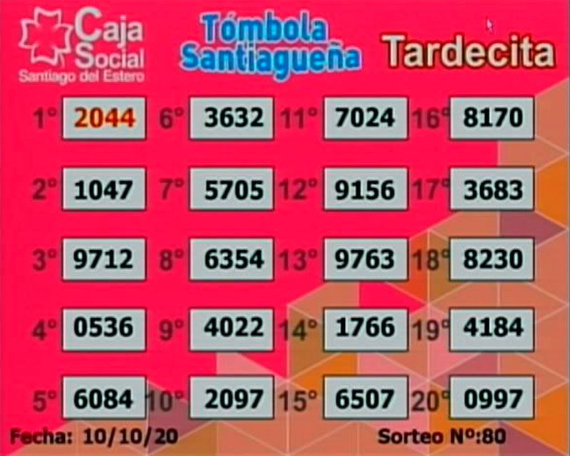 Este sábado 10 de octubre de 2020 se realizaron los sorteos de la Tómbola Santiagueña, que lleva a cabo la Caja Social de Santiago del Estero.