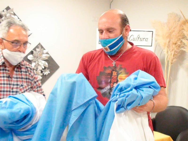 Norman Guillermo González, a cargo de la Fragata ARA Rosales en Puerto Belgrano, Bahía Blanca; envío la insignia patria para la Dirección Municipal de Cultura.