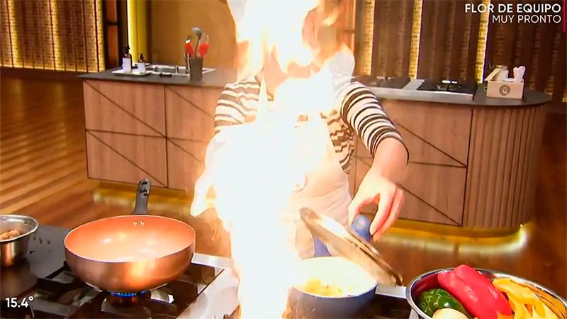 Rápidamente la actriz tiró la cabeza para atrás (un instante que no se pudo ver en el editado final del episodio), y así evitó que el fuego le alcanzara el rostro y el pelo. Como profesional que es Sofi siguió cocinando y en la entrevista posterior bromeó sobre el momento: "Dije: '¿Qué pasó? ¿Se incendia el estudio?".