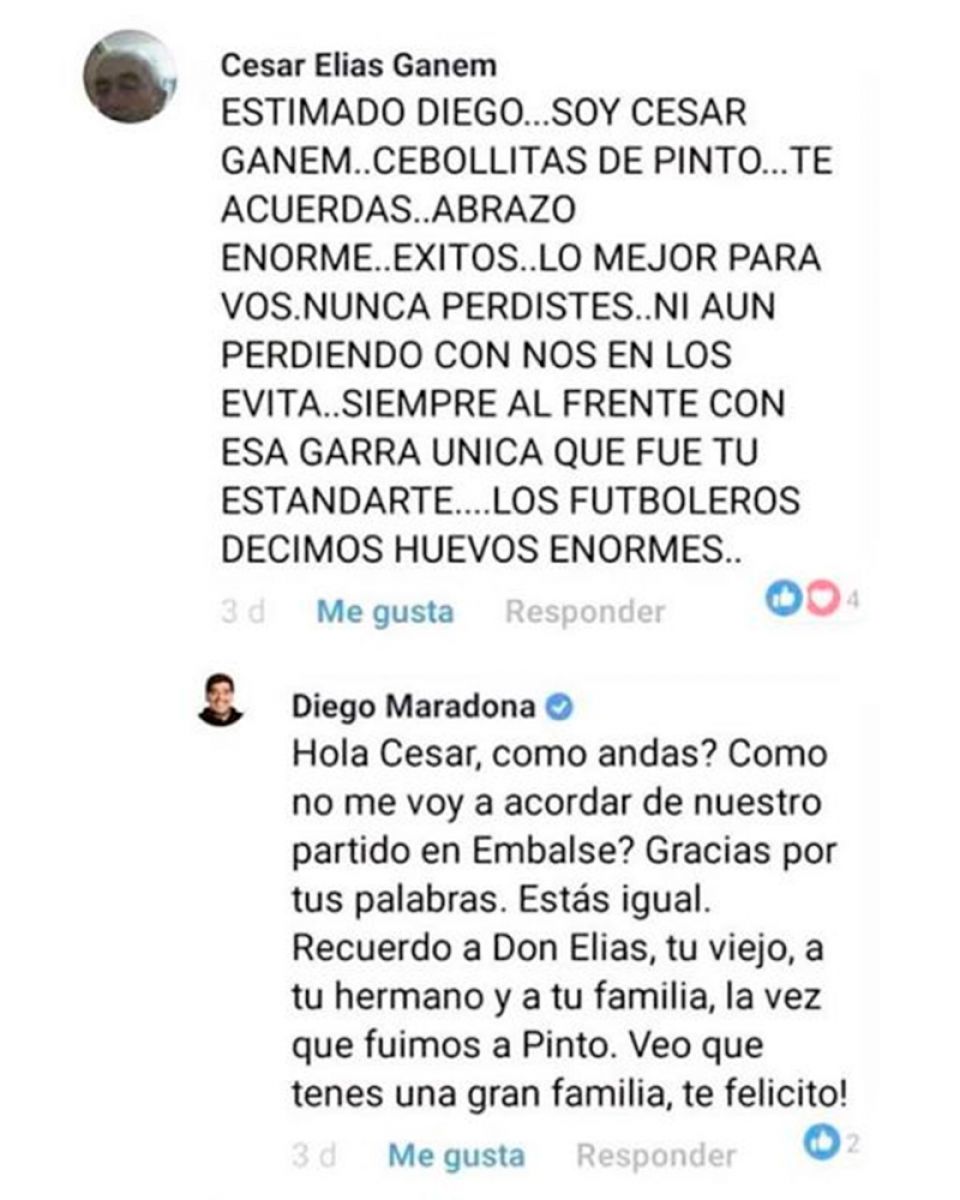 “Con Los Cebollitas perdimos la final del Campeonato Nacional, en Río Tercero, Córdoba. Nos ganó un equipo de Pinto, Santiago del Estero, dirigido por un señor llamado Elías Ganem. Su hijo, César, me vio tan amargado, que se me acercó y me dijo: “No llores, hermano, si vos vas a ser el mejor jugador del mundo...’. Todos creen que me regaló su medalla de campeón, pero nada que ver: se la quedó él y bien ganada que la tenía”, supo narrar Maradona en su libro Yo soy el Diego de la gente.
