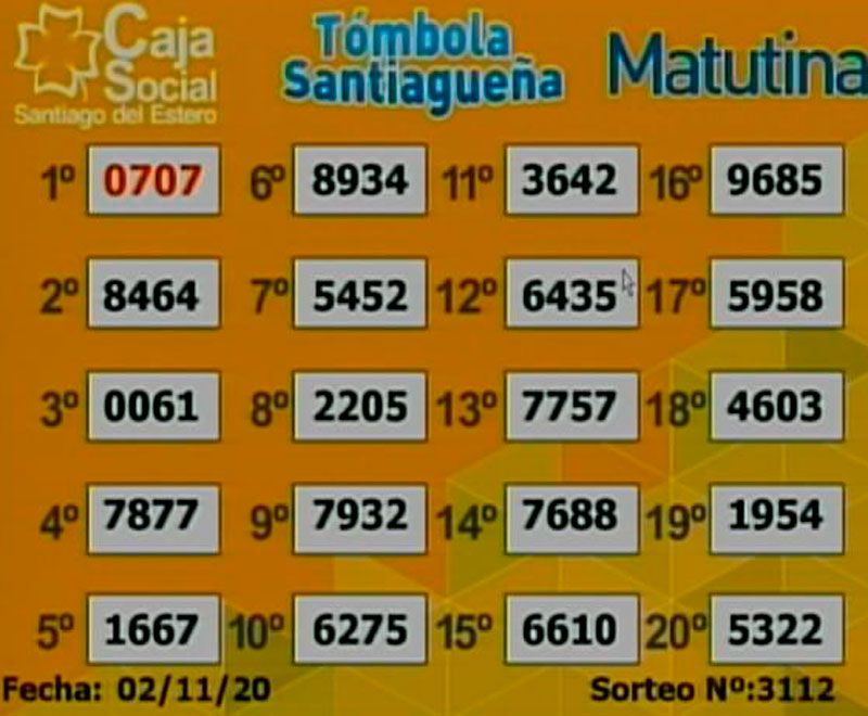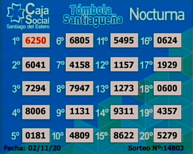 Como todos los días, este lunes 2 de noviembre la Tómbola Santiagueña realizó nuevos sorteos.