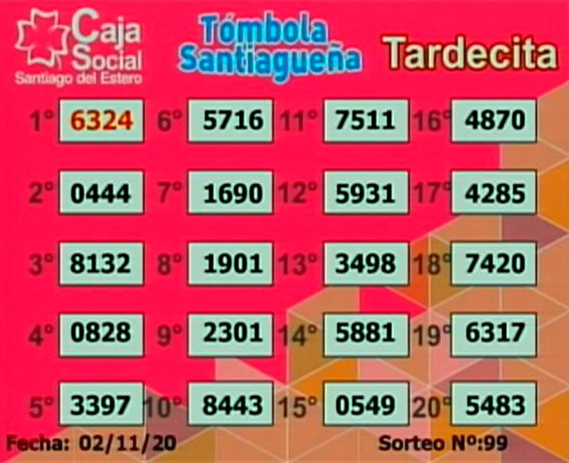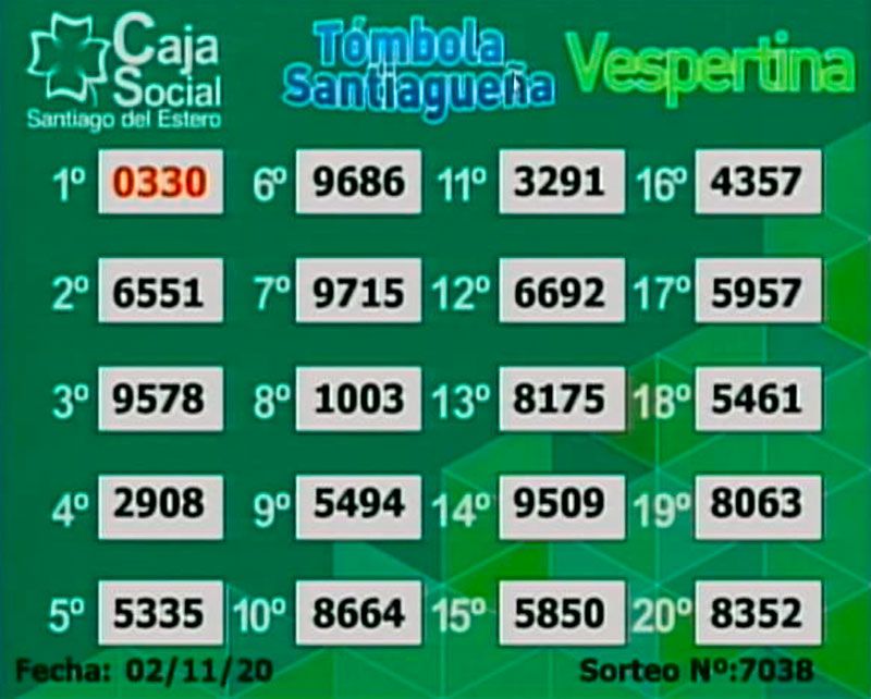 Tómbola Santiagueña: los resultados del lunes 2 de noviembre