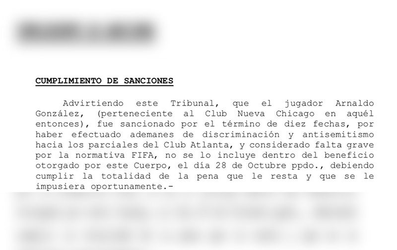 El jugador tendrá que cumplir las 9 fechas de suspensión que recibió tras los gestos racistas y antisemitas cuando vestía la camiseta de Nueva Chicago ante Atlanta.