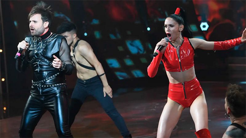 Los encargados de cerrar la noche del lunes en el Cantando 2020 fueron Dan Breitman y Flor Anca. Vestidos de manera muy sexy, ambos se pusieron a tono del tema "Me haces tanto bien", de Amistades peligrosas.