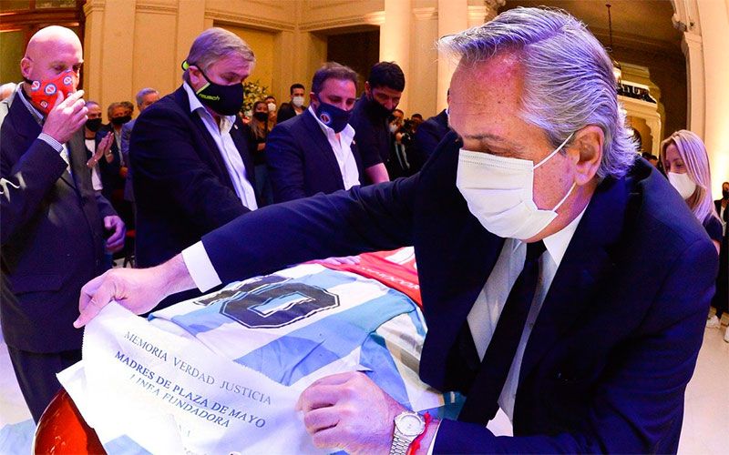 Alberto Fernández fue a despedir a Maradona y le dejó una camiseta de Argentinos