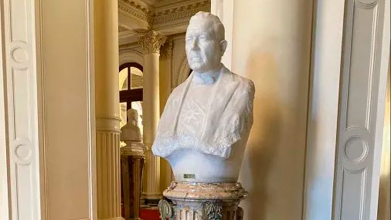 Personal de las fuerzas de seguridad repuso hoy en el Salón de los Bustos de Casa Rosada la escultura del ex presidente radical Hipólito Yrigoyen, luego de que este jueves se cayera y sufriera roturas durante los incidentes en el velatorio de Diego Armando Maradona.