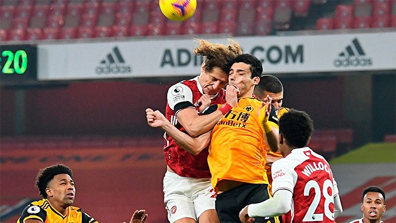 Jiménez sufrió una fractura en el cráneo, tras saltar e impactar con David Luiz, del Arsenal, en el partido que su equipo Wolverhampton le ganó por 2-1 en el Emirates Stadium.