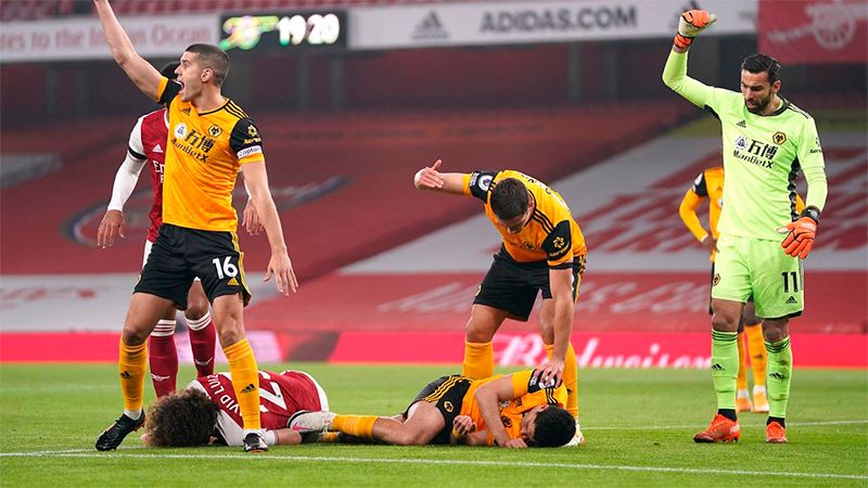 El delantero del Wolverhampton terminó el partido ante el Arsenal con una grave lesión.