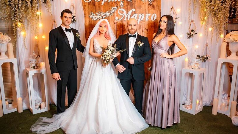 El fisicoculturista lució un traje negro, y la muñeca, un espectacular vestido blanco con velo. En su discurso a los asistentes a la ceremonia, Tolochko dedicó unas románticas palabras a su flamante esposa: "Tiene una personalidad ardiente, pero hay un alma tierna en su interior".