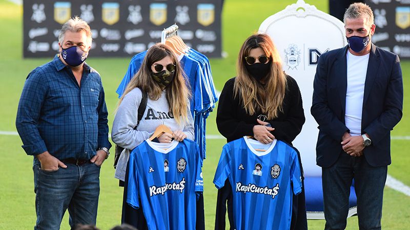 El banco de suplentes con imágenes de Diego Maradona en distintos momentos, su sillón en el campo de juego, una colección de 59 camisetas de Gimnasia y el buzo de entrenador que le fueron entregadas a sus hijas Dalma y Gianinna, fueron parte del doloroso y emotivo reconocimiento al astro, denominado "Del Bosque a la Eternidad".