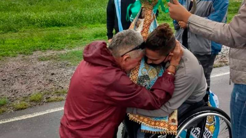 Se vivió un momento muy emotivo, entre lagrimas el joven agradeció el gesto y la posibilidad de cumplir su promesa de llegar hasta la santa madre una vez más.