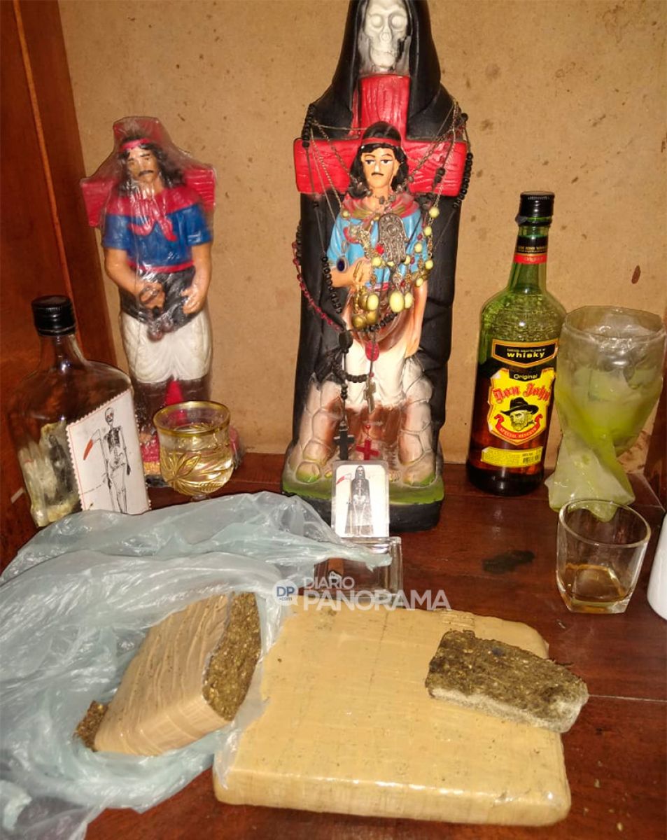 En uno de las habitaciones, los uniformados encontraron la droga en un santuario de San La Muerte, indicaron fuentes policiales.