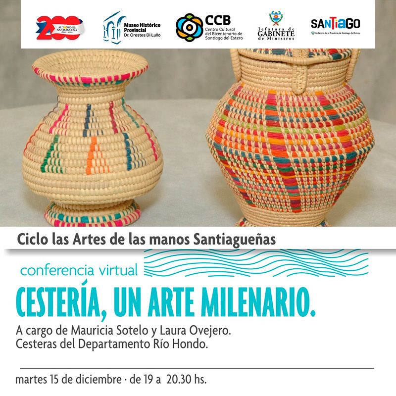 La conferencia de este jueves abordará el tema “Cestería, un arte milenario”, a cargo de Mauricia Sotelo y Laura Ovejero, cesteras de Departamento Río Hondo.