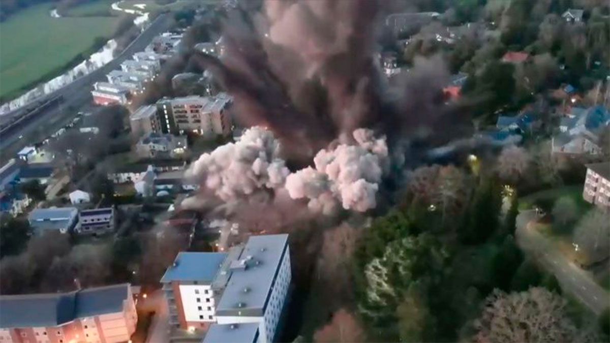 La explosión controlada de una bomba de la Segunda Guerra Mundial ha causado daños estructurales en varias propiedades de la ciudad de Exeter, unos 250 kilómetros al suroeste de Londres. El dispositivo, de fabricación alemana y de unos 1.000 kilogramos, fue descubierto este viernes en un sitio de construcción de un terreno privado cerca del campus de la Universidad de Exeter, según ha informado el diario The Guardian.