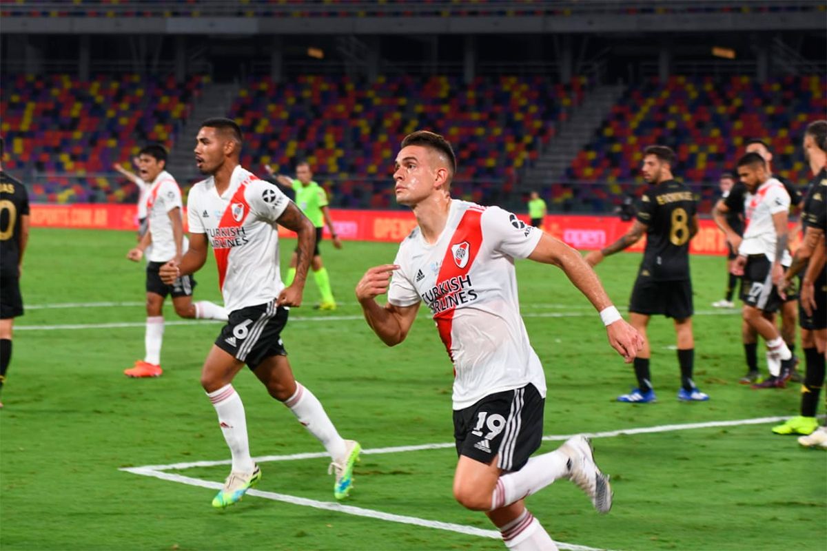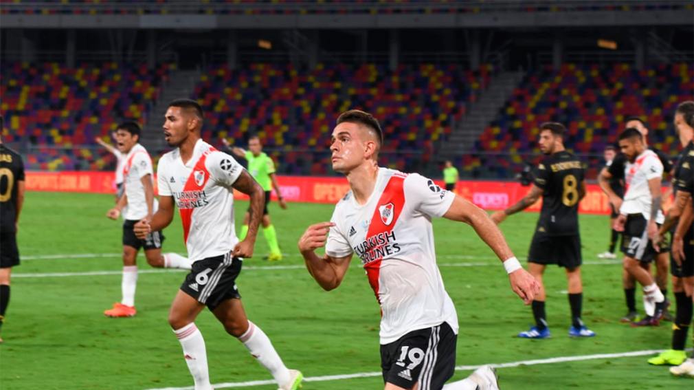 El primer gol en un partido oficial en el estadio Único Madre de Ciudades llegó a los 31 minutos por intermedio de Rafael Santos Borré. El colombiano metió un soberbio cabezazo para poner al frente a River en la etapa inicial de la Supercopa Argentina ante Racing.