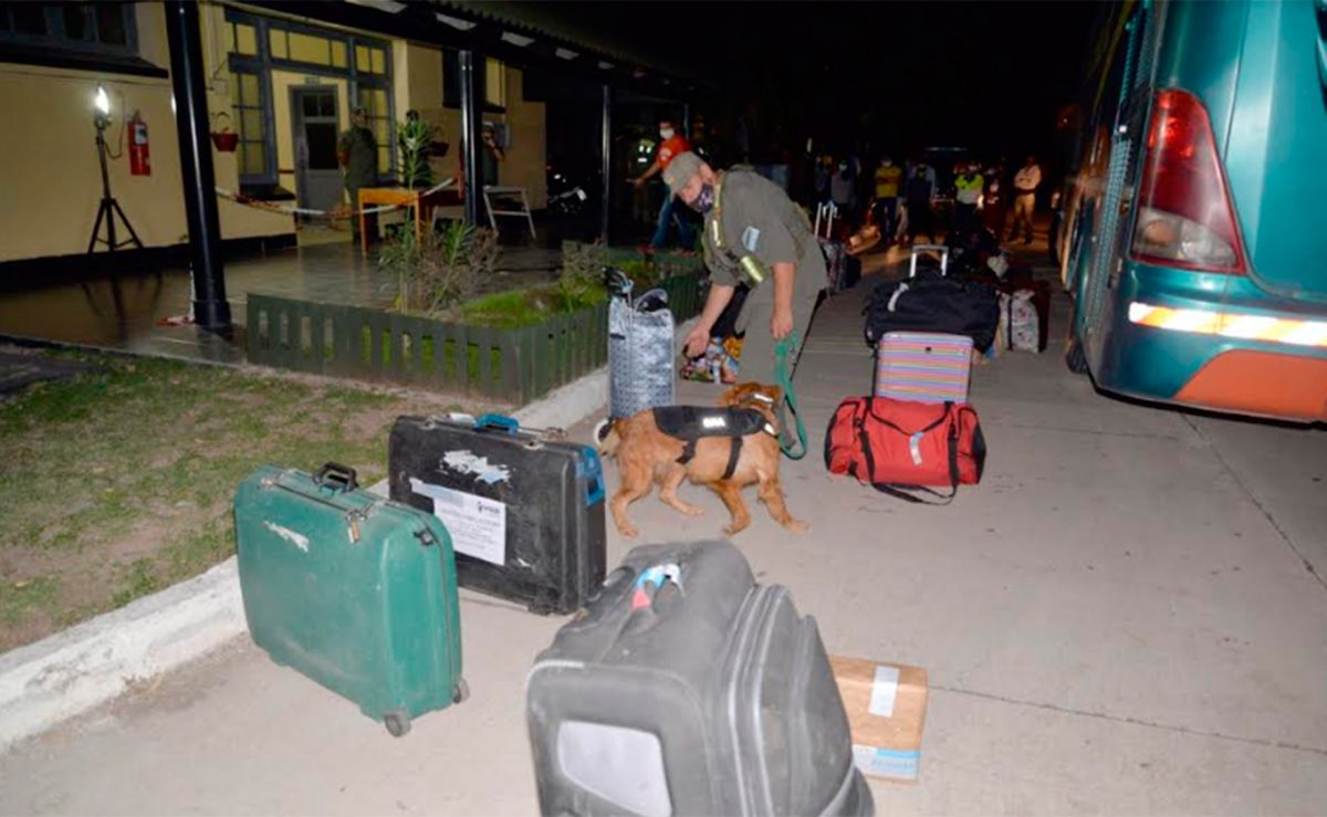 Al momento de la inspección, los uniformados controlaron el sector de la bodega del ómnibus en donde percibieron un fuerte olor a pegamento proveniente de cuatro mochilas. Ante esa situación, el can detector de Narcóticos “Jasy” al pasar por el equipaje marcó la posible presencia de estupefaciente.