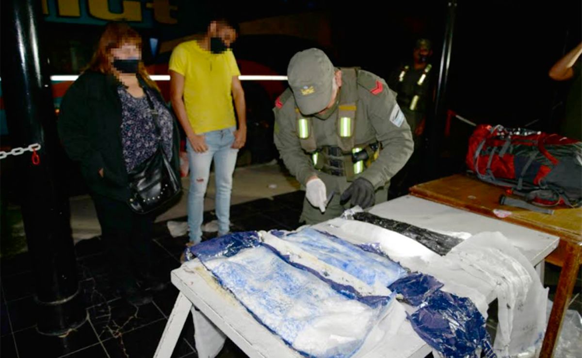Inmediatamente, los gendarmes realizaron la apertura de las pertenencias de uno de los pasajeros (ciudadano de nacionalidad peruana) en donde hallaron dentro de las mochilas que poseían falsas costuras creando una especie de doble fondo que contenía envoltorios transparentes con una sustancia pulverulenta en su interior.