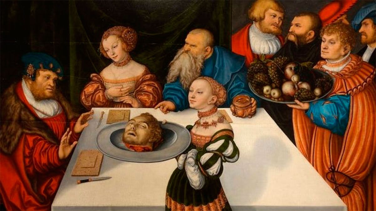 Salomé también aparece retratada, segura de sí misma, por Cranach el Viejo (1531): no parece impresionada por la cabeza ensangrentada que lleva en un plato, como el trofeo de su victoria, mientras Antipas hace un gesto de disgusto.