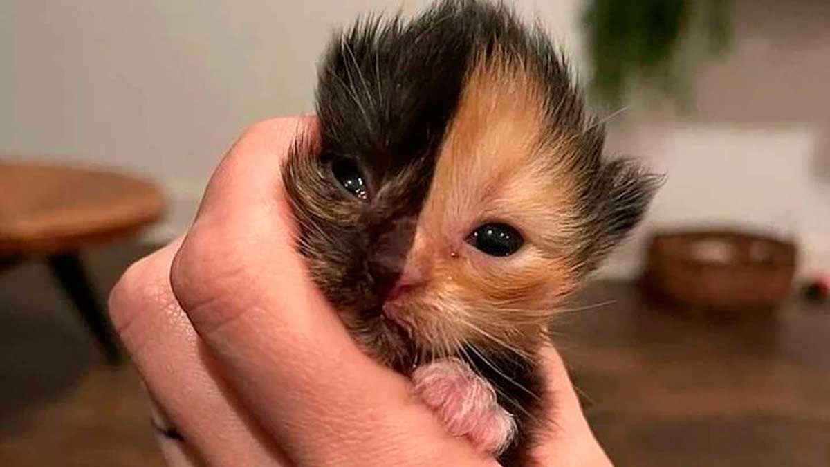 Un gatito huérfano que nació una cara bicolor perfectamente dividida por la mitad es la nueva estrella de las redes sociales y pronto tendrá un hogar para siempre.