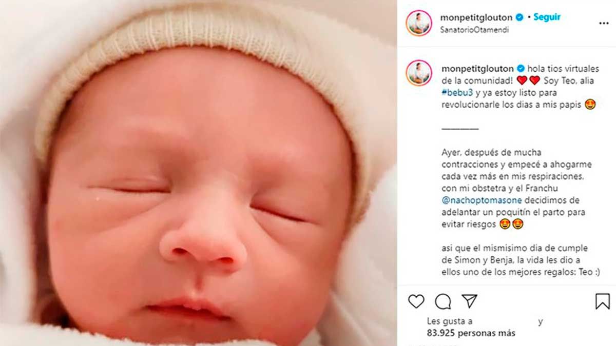 La reconocida cocinera tuvo a su tercer hijo a pocos meses de recuperarse del coronavirus. “Hola tíos virtuales de la comunidad. Soy Teo, alias #Bebu3 y ya estoy listo para revolucionarle los días a mis papis”, escribió en Instagram.