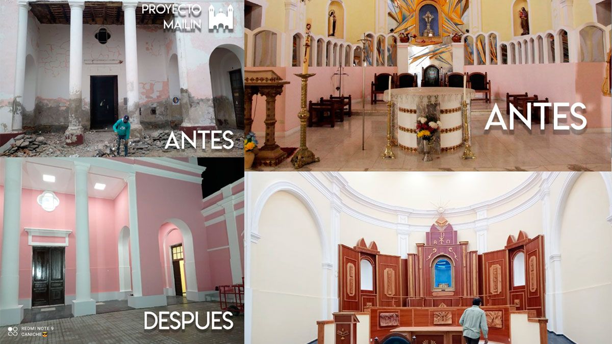 El Sacerdote padre Sergio Quinzio, a cargo de la Iglesia compartió las imágenes del antes y el después de la obra.