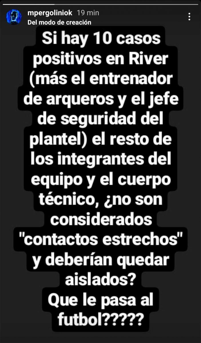 El brote de coronavirus que azota al plantel de River, que ya tiene a diez jugadores contagiados, también repercute en Boca a horas de jugar el Superclásico. En ese sentido, Mario Pergolini, el exvicepresidente del club, hizo un posteo en el que se quejó de que no se aísle a todo el plantel como contacto estrecho.