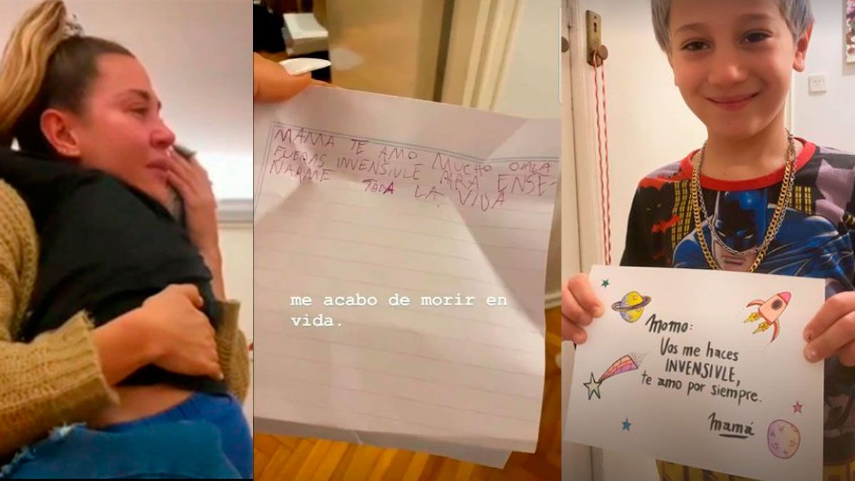 "Me acabo de morir en vida… Les dejo este momento mágico y real, que a veces dejamos afuera de las redes", escribió la actriz y cantante, sobre el video en el que se la ve levantando una cartita que le escribió su hijo, con un conmovedor mensaje: "Mamá, te amo mucho. Ojalá fueras invencible para enseñarme toda la vida".