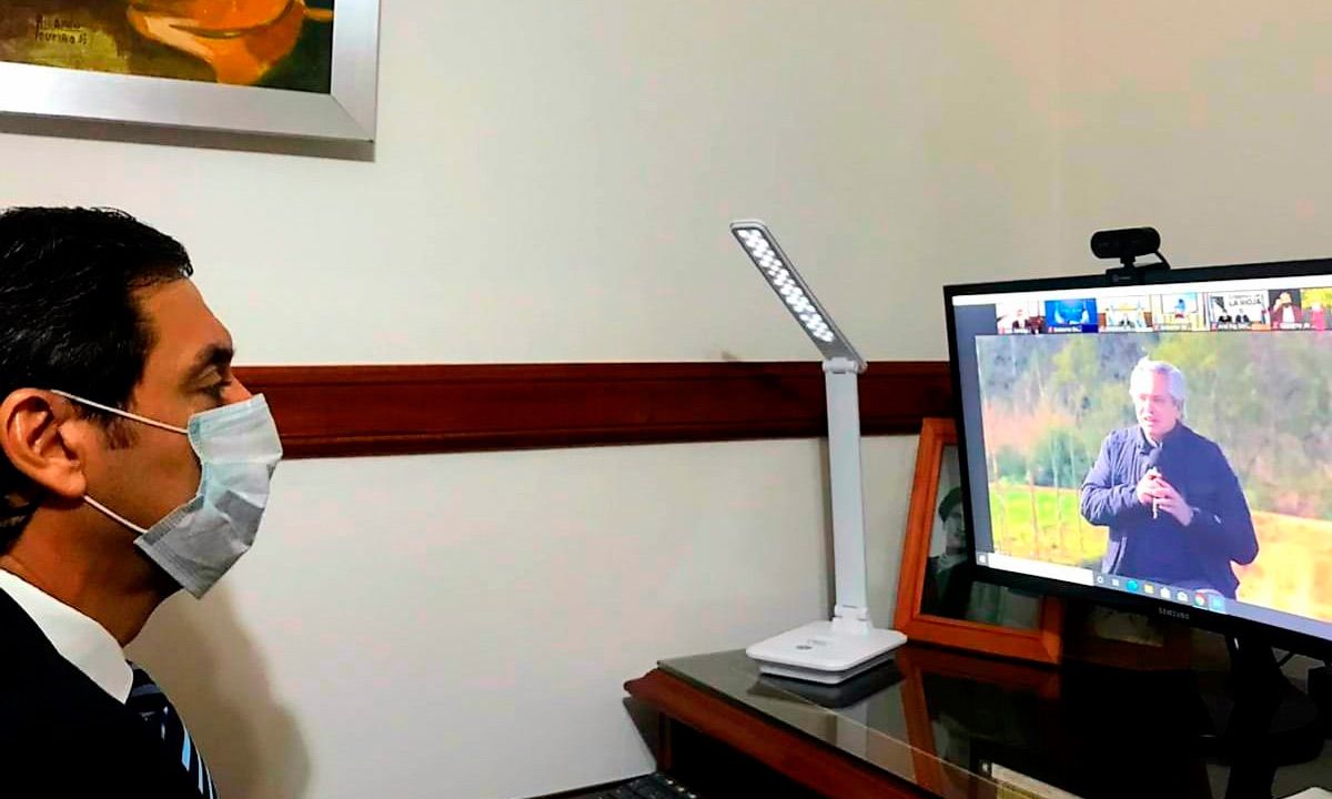 Lo hizo de manera virtual. El vicegobernador sigue cumpliendo con el aislamiento tras dar positivo de coronavirus.