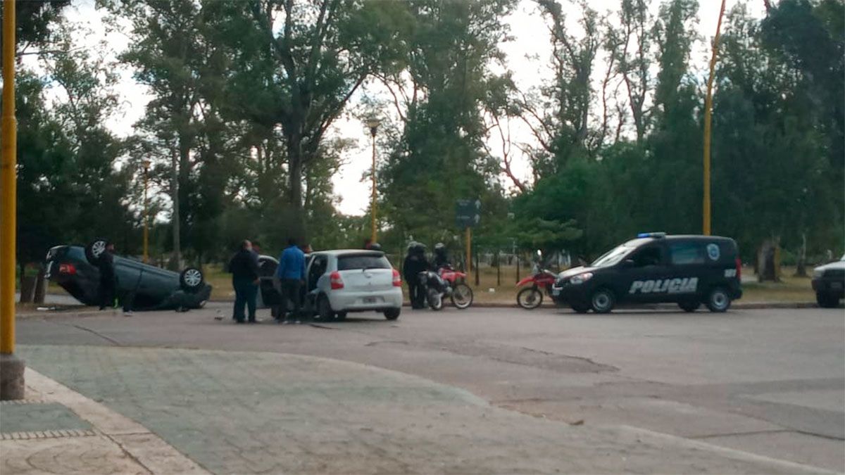 El hecho ocurrió alrededor de las 13 en la calle Gumersindo Sayago y Olaechea. Un Toyota Etios y un Renault Logan impactaron y este último terminó volcado en la vereda.