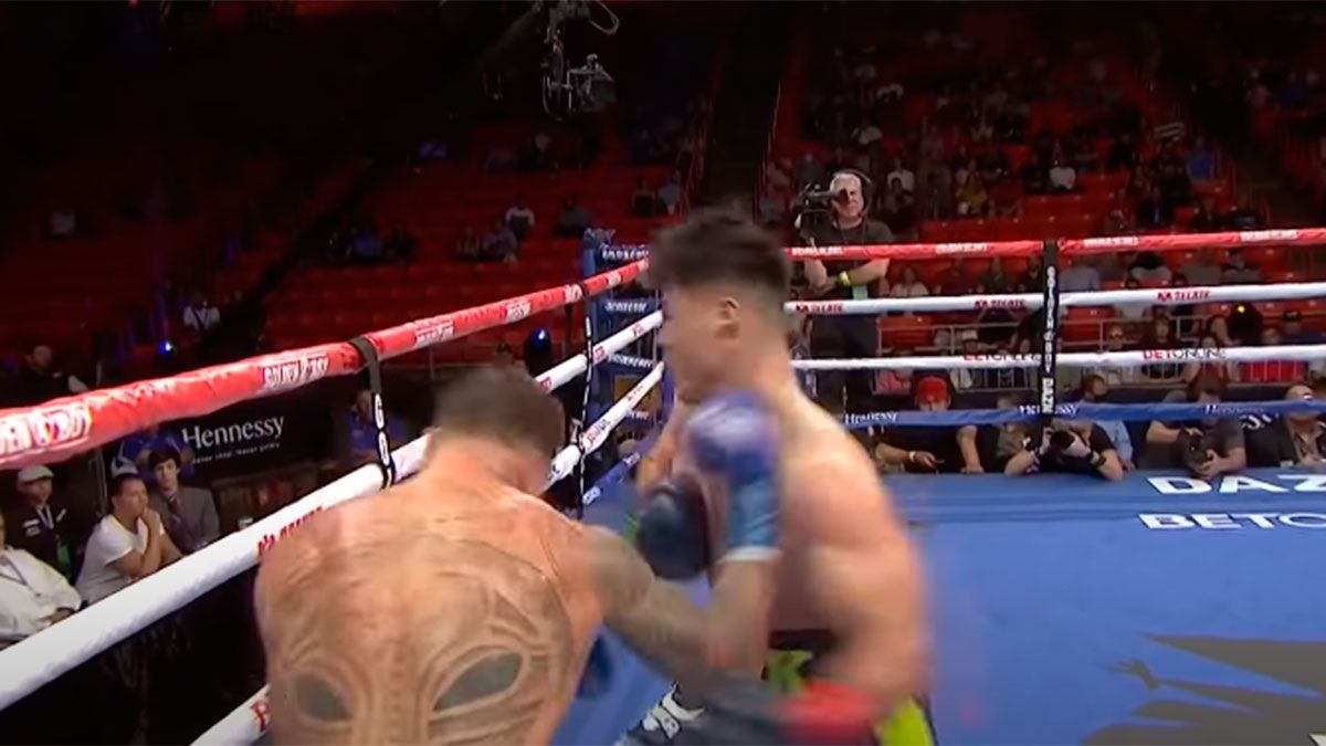 Quedaba un minuto y 46 segundos para el final del tercer asalto y Melikuziev nunca pudo predecir lo que iba a suceder. El uzbeko, que era claro favorito ante un boxeador que venía cosechando resultados disparejos, acorraló a su oponente en una esquina sin imaginar lo que vendría.