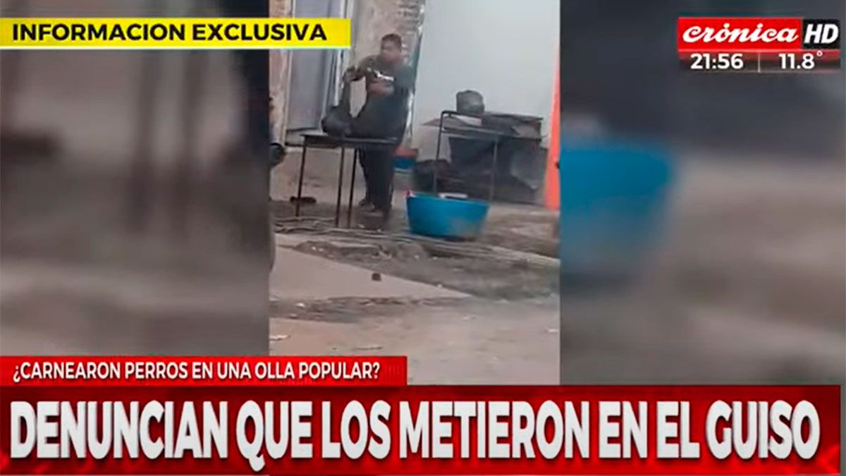 Grabado desde el interior de un auto, puede verse como un hombre levanta lo que sería un perro, que al parecer estaría muerto, para luego colocarlo sobre una mesa. Tras afilar el cuchilllo comienza a carnear al animal, al aire libre, a la vista de todos y frente a lo que sería una vivienda. A metros de la escena macabra, se encontraba un cartel con el anuncio de una olla popular.