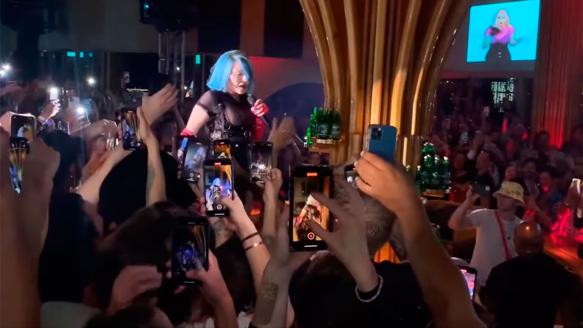 Se dio tiempo de caminar por la barra del bar mientras los asistentes captaban cada segundo de su presentación con sus teléfonos móviles, según pudo verse en el video compartido en la cuenta de Instagram @dennyleenyc.