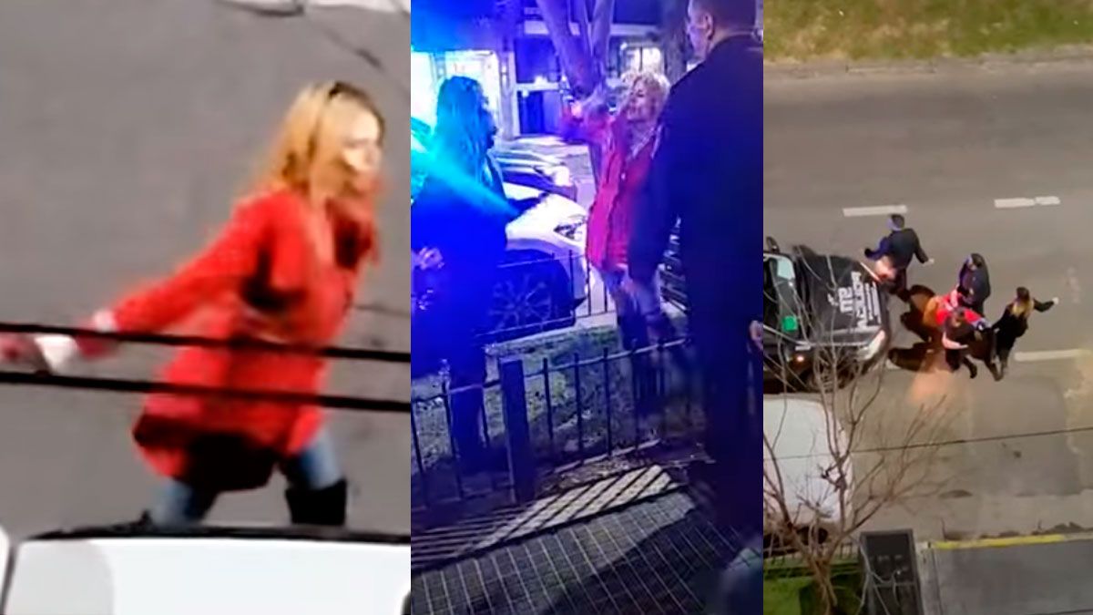 Desde el balcón de un edificio con vista privilegiada a los incidentes, un vecino grabó toda la secuencia del increíble ataque de furia de la mujer.