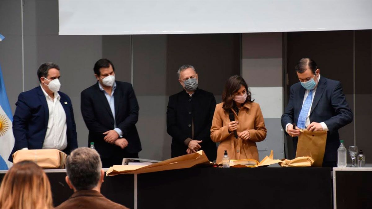 El gobernador Zamora y el secretario de Articulación Federal del Ministerio de Desarrollo Territorial y Hábitat de la Nación, Arq. Hugo Cabral, encabezaron la apertura de sobres para la licitación del complejo barrial.